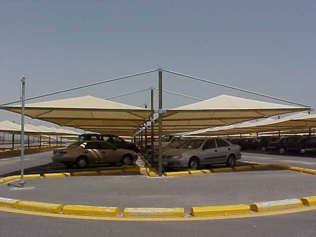 تركيب مظلات خارجية للسيارات من نوع قماش البولي ايثيلين بألوانه المختلفة والمميزة التي تسمح بمرور الهواء بنسبة تصل إلى 10%، حيث أننا نحرص على توفير أفضل المشاريع للمظلات في المساحات الكبيرة ولهذا نقوم بإعداد مئات التصاميم من مظلات السيارات الحديثة.